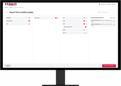 Messdaten aus bestehenden Projekten können jetzt direkt in neue Projekte importiert werden. Diese Verbesserung unterstützt ein effizienteres Datenmanagement und eine bessere Projektorganisation innerhalb der Office-Applikation, wodurch sich Messergebnisse verwandter Inspektionen einfacher zusammenführen und überprüfen lassen.